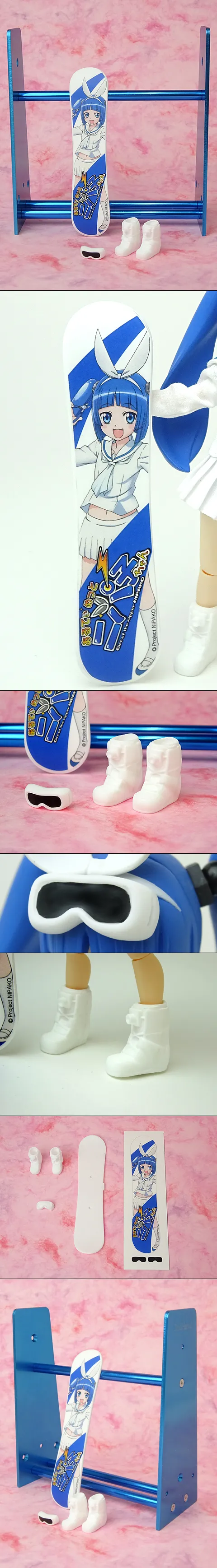 キャラスノボとは、スノーボード、ブーツ、ゴーグルを1/12スケールで立体化したレジン製簡易ガレージキットです。そのスノーボードに貼れるキャラクターステッカーが付属します。