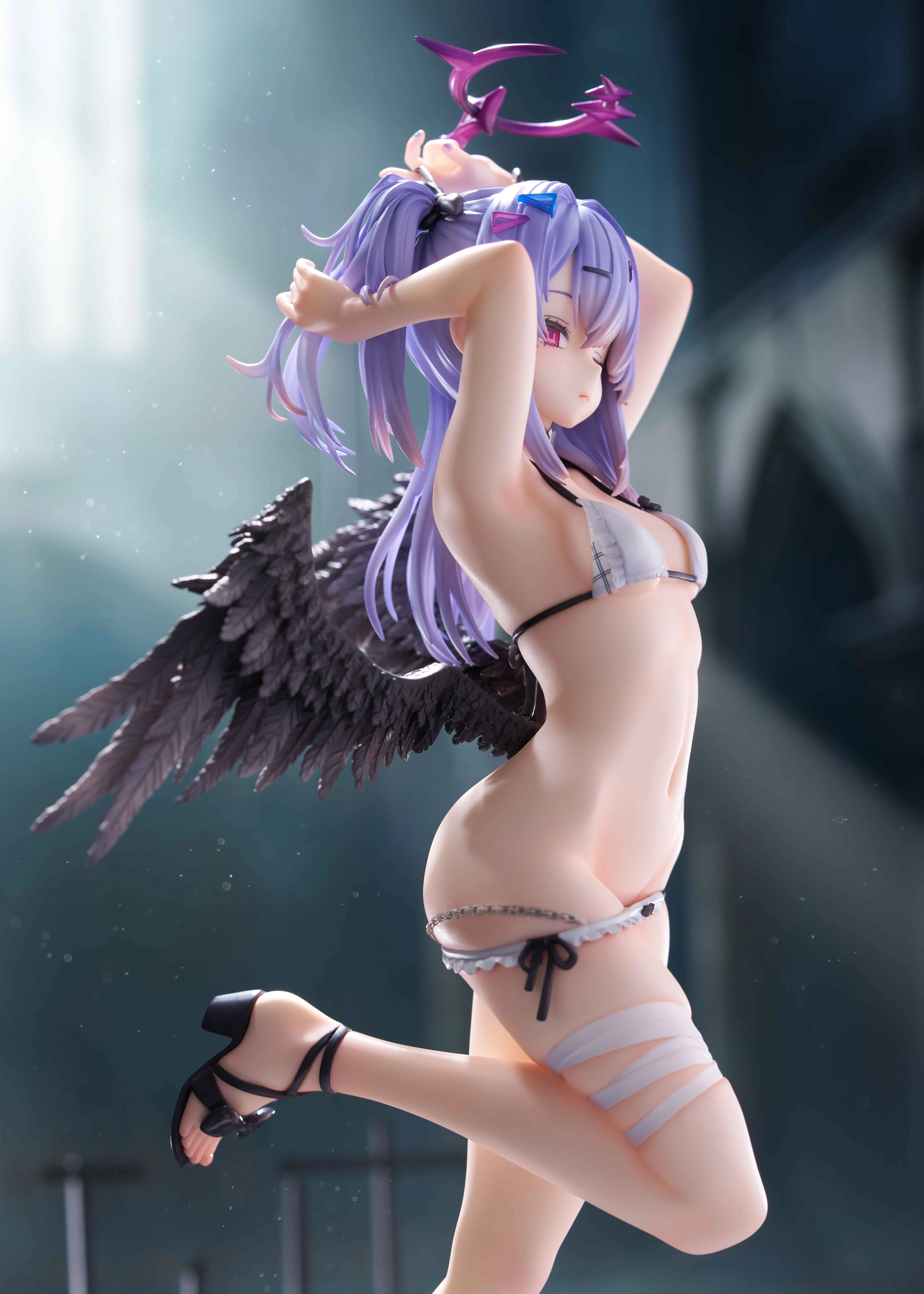 手にかかる髪や頭上の輪、翼など細かい表現を大切に立体化いたしました。