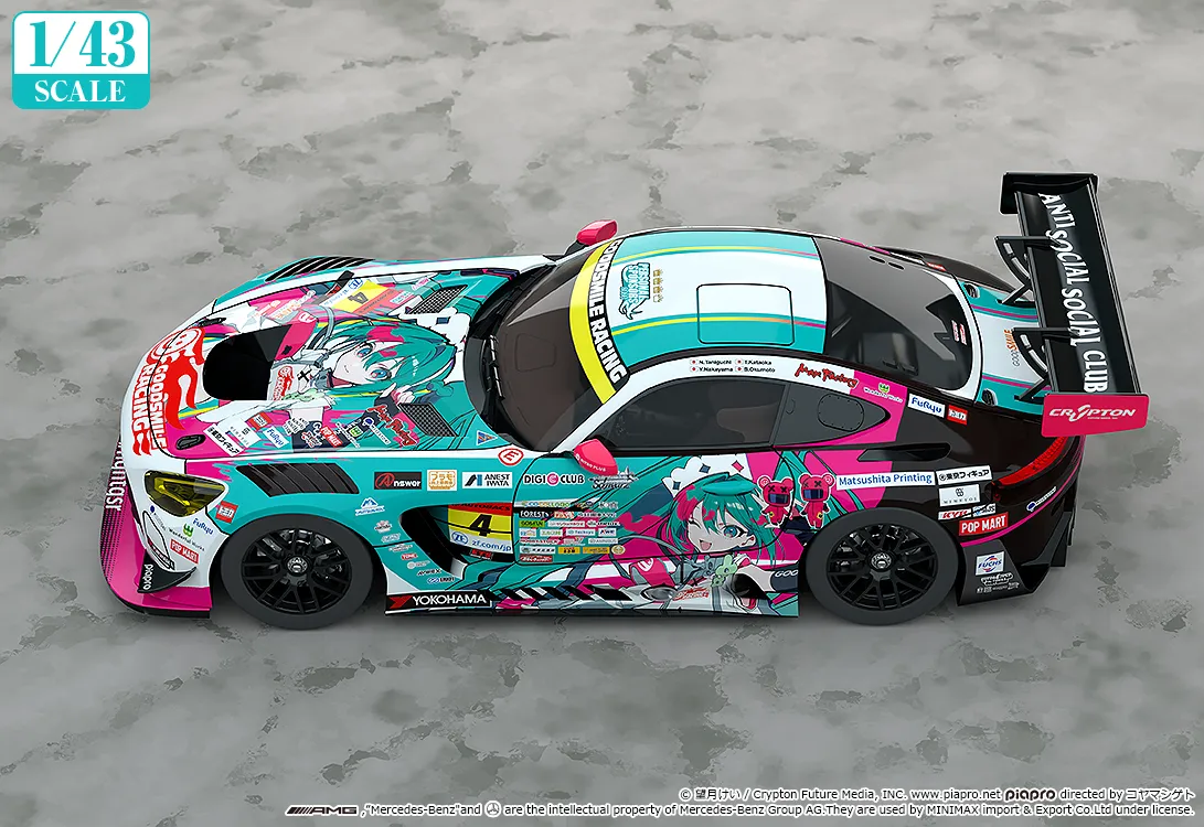 2025年の『SUPER GT』GT300クラスに参戦するレーシングカー「グッドスマイル 初音ミク AMG」の1/43スケールミニカーが登場です。