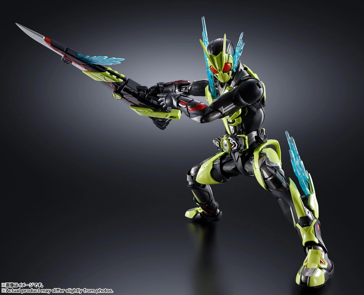 プロダクトデザイナー山下貴斗氏デザインアレンジ。ヒーローの体躯をベースに設計した新機構の数々。関節をはじめとした各所にダイキャストを使用。さらにメタリック彩色など素材面からも説得力を生み出す。劇中の演出を立体物に落とし込む豊富なエフェクトパーツが付属。新たに構築されたヒーローが夢に向かって今、飛び立つ。