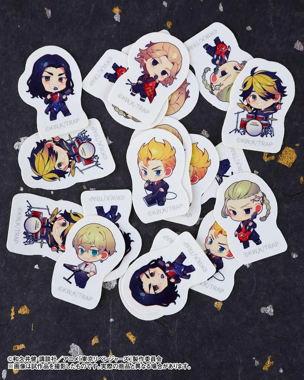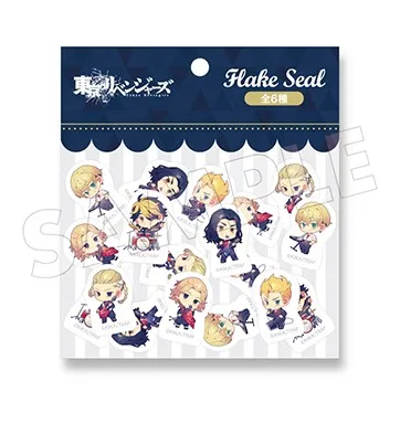 アニメ『東京リベンジャーズ』より、人気イラストレーター夢ノ内先生描き起こしのオリジナルイラストを使用した、フレークシールです。絵柄は6種類。