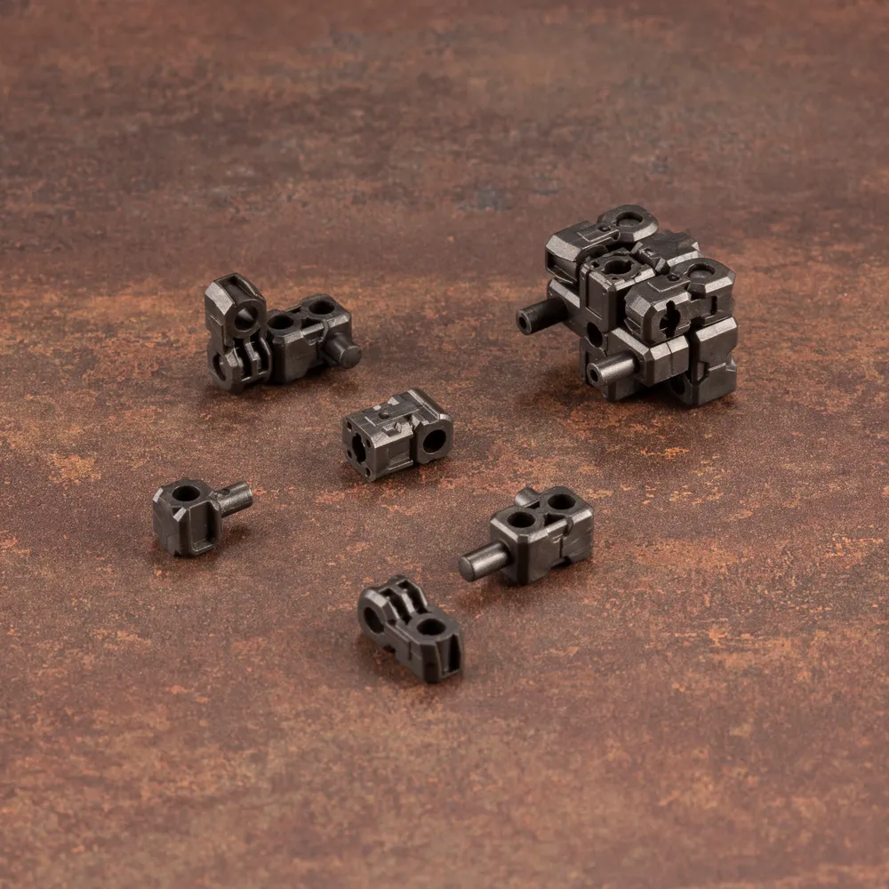 シリーズ共通となるコア部分は、多数の “シンプルなデザインのジョイント”を組み合わせた3mmジョイントで接続した構成ですので、組み合わせる事でフレームの増設や新たな変形機構の構築などの幅広い遊び方ができます。3mmジョイントはフレームアームズやヘキサギア、フレームアームズ・ガール、メガミデバイスなど、様々なコトブキヤオリジナルシリーズで共通化されているので、アイデア次第で様々なモチーフのメカを作ることが出来ます。