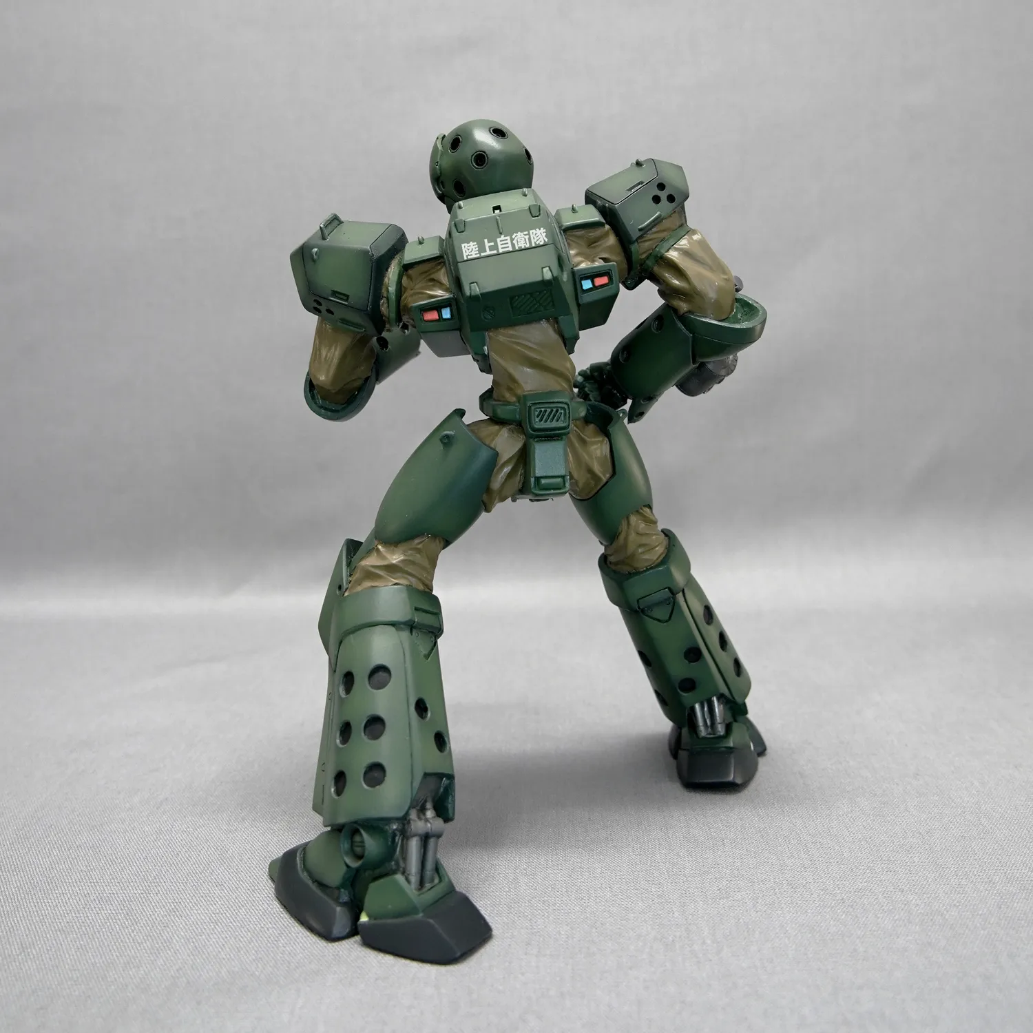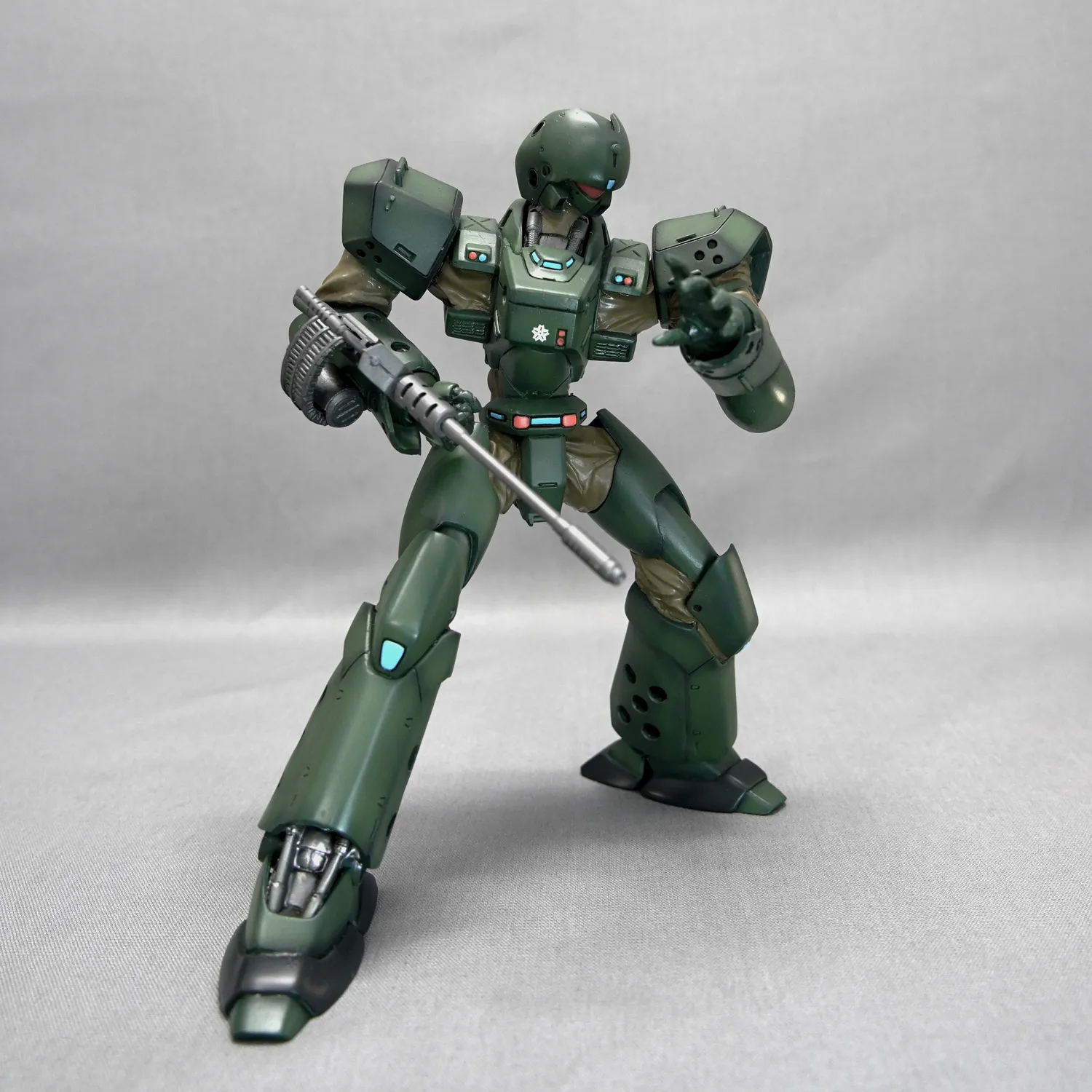 海洋堂のパトレイバーフィギュアシリーズのほとんどが造形作家・田熊勝夫の手によるものですが、この空挺式レイバーは”かっこいいロボット”を造形するロボ師・佐藤拓の手による傑作。かっこ良いロボットフィギュアのお手本となるモデルです。