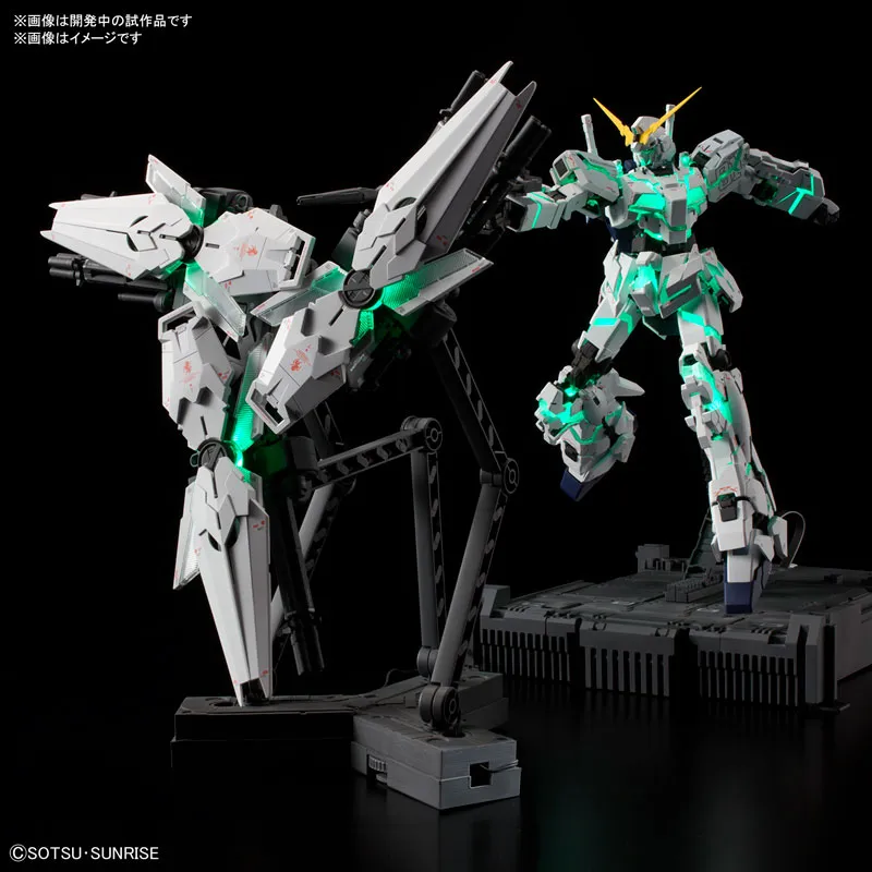 ボタン操作で瞳、頭部メインカメラの点灯から、本体サイコフレームは赤、緑に発光しその後、強弱を伴う発光演出が可能。